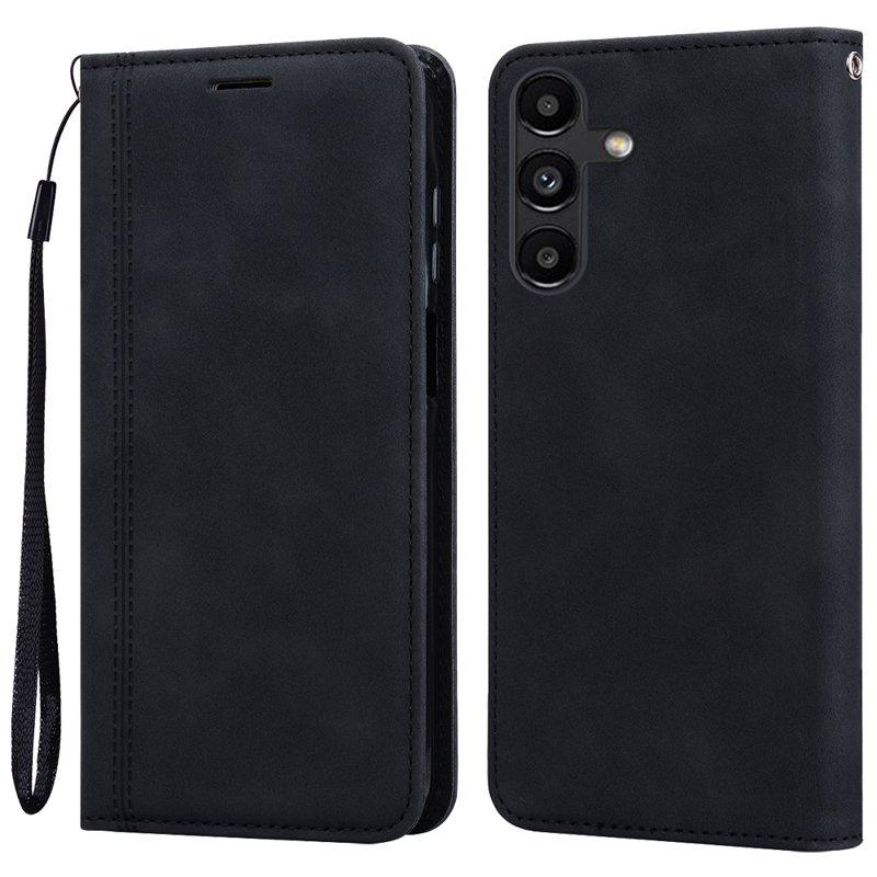 Samsung Galaxy A35 5G Fodral Affärsstil Magnetisk Stängning Äkta Läder - Svart