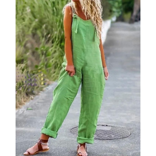Per donna Normale Pantaloni in lino e cotone Streetwear Tinta unica Senza Maniche Collo a U Streetwear Quotidiano Vestibilità regolare Verde Estate