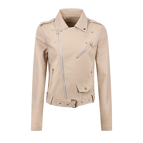 Per donna Giacca in Ecopelle Giacca da Biker Caldo Confortevole Cerniera Tasca Casual Tinta unica Vacanza Streetwear Casuale Abbigliamento quotidiano Regolare Collo ripiegato Vestibilità regolare