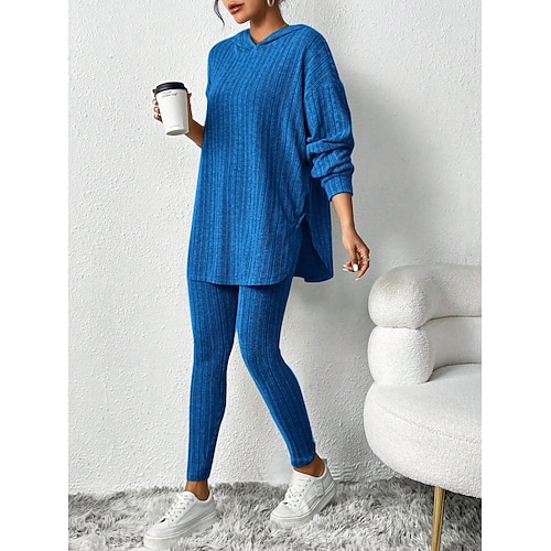 Per donna Moda Streetwear Set di Pantaloni Bolero Top Manica Lunga Con Cappuccio Tinta unica All'aperto Lavoro Casuale Nero Vino Verde militare Autunno Vestibilità regolare