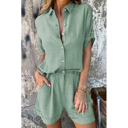 Per donna Normale Tuta Streetwear Tinta unica Manica Corta Pantaloni Cargo Colletto a Camicia Tasca Streetwear Quotidiano Vestibilità regolare Nero Bianco Cachi Autunno