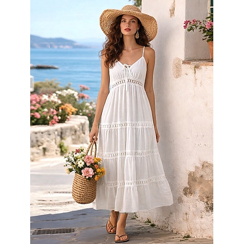 Per donna Abito maxi Abito a trapezio Abito Sottoveste Vacanza Casual All'aperto Uscire Vestibilità comoda Tinta unica Senza Maniche Scollo a V Bianco Estate Primavera