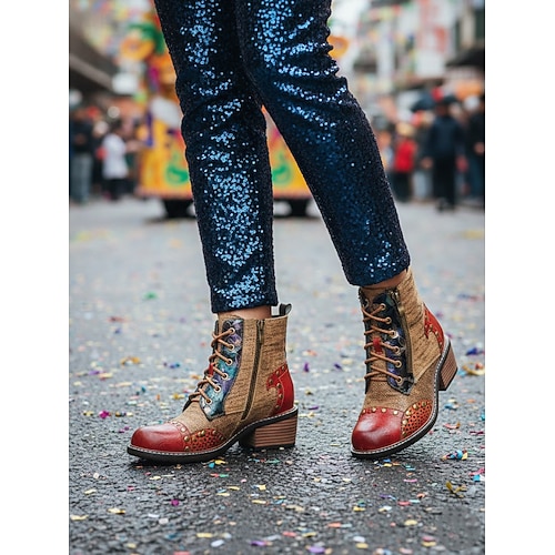 stivaletti allacciati boho chic da donna - scarpe da festival uniche con fascino vintage atmosfera da carnevale