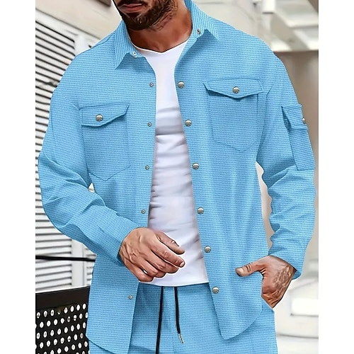 Per uomo Giacca Leggera Giacca a nido d'ape Giacca Camicia Giacca Casual Vacanza Quotidiano Traspirante Tasca Primavera Autunno Semplice Moda Classico Bavero Regolare Nero Bianco Vino Verde scuro