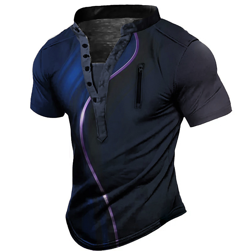 Men's Graphic Color Block T Shirt Henley Shirt Vintage Shirt Short Sleeve 3D Print Fashion Designer Casual Outdoor Daily Sports Summer Black / Green Pink Red Navy Blue Blue Stand Collar Henley T-Shirt