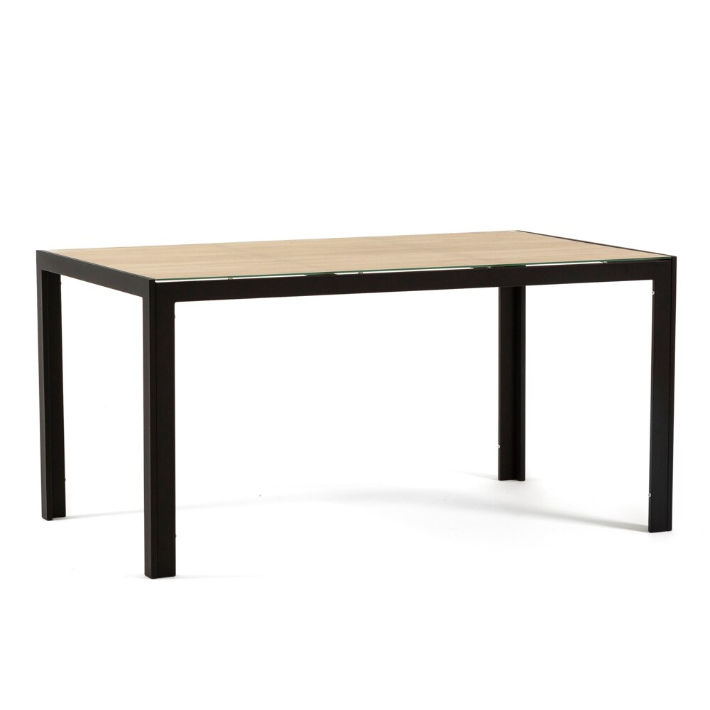 RATTATAN Rechteckiger Tisch 150x90 cm für Innen- und Außenbereich, aus Aluminium und Glas, für Küche, Esszimmer, Garten, 6 Personen–MILO–Schwarz/Holz