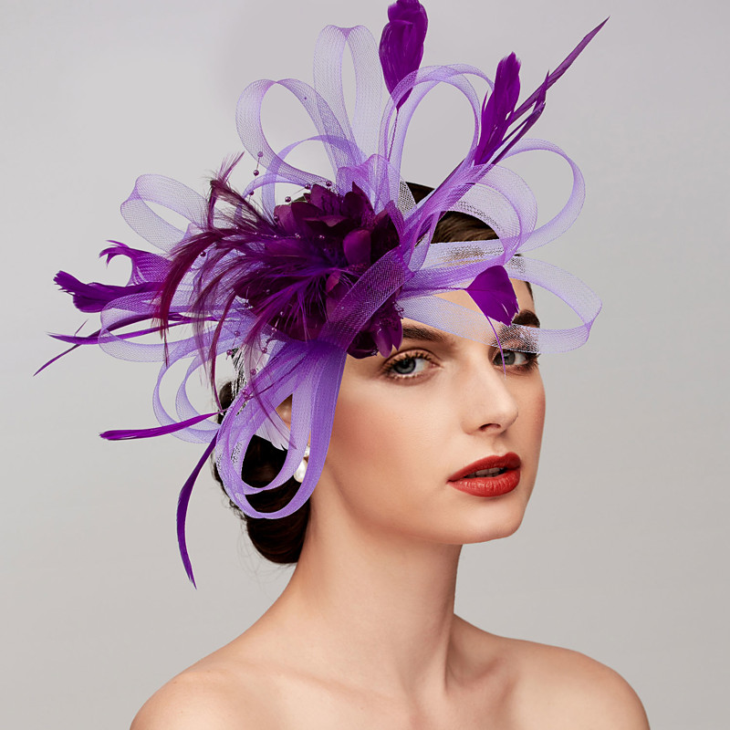 Elegant Fascinator Hats Net Mesh Tulle Headpiece Clip Headband with Feather Flower Floral Kentucky Wedding Tea Party Horse Race Church Cocktail Vintage for Women dress Race Day Dress