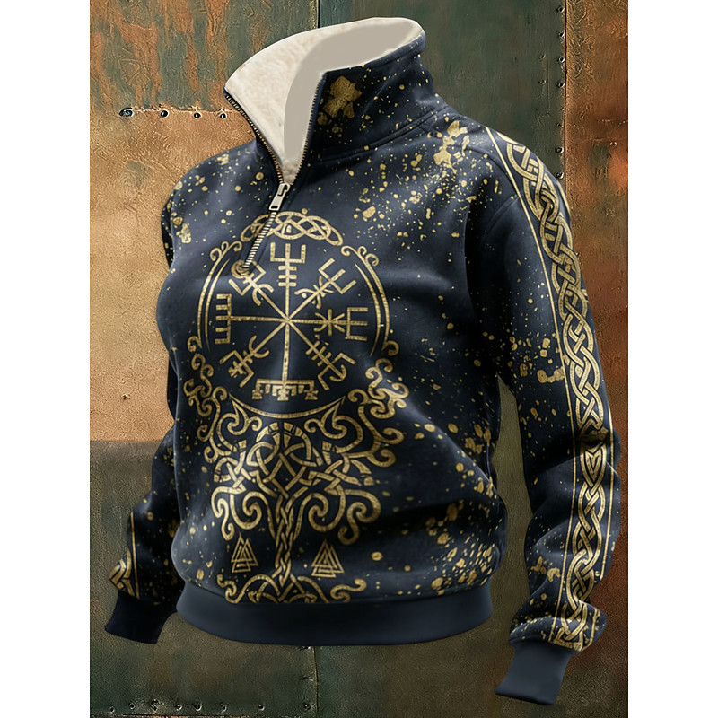 Men's Cowboy Sweatshirt Ethnic Vintage Retro Long Sleeve Stand Collar Outdoor Work Gift Brown Zipper Fall Winter Designer S M L XL XXL XXXL