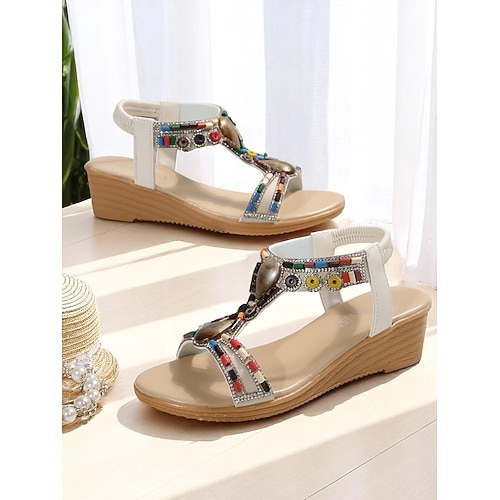 sandali con zeppa bohémien da donna con decorazioni di perline colorate – scarpe estive aperte in stile etnico per la spiaggia, le vacanze e le uscite informali