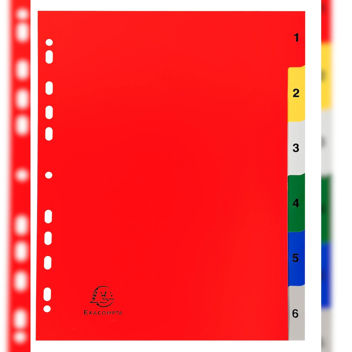 Exacompta 2506E 20x Register aus PP 180µ mit 6 Positionen und bedrucktem Deckblatt, DIN A4 Überbreite - Farben sortiert
