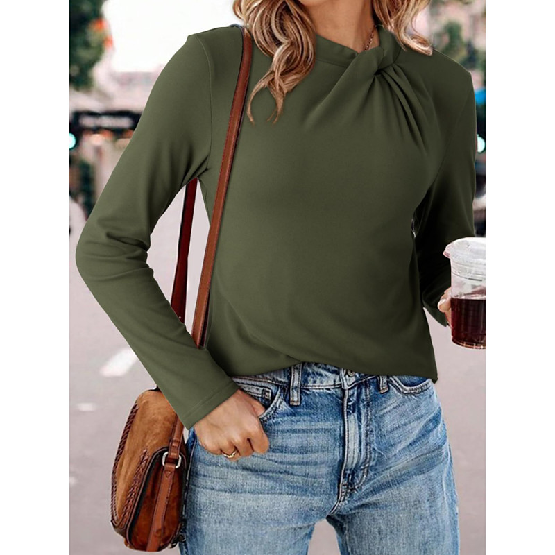 Women's Blouse Solid Color Stylish Modern Casual Long Sleeve Crew Neck Regular Tops Daily Ruched White Army Green Brown Apricot Spring Fall Winter