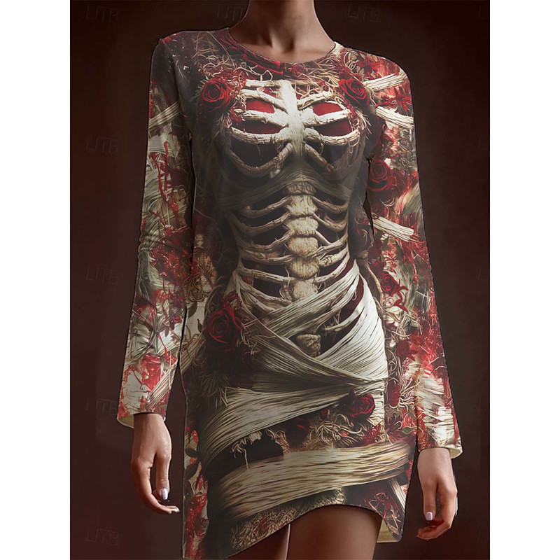 Women's Mini Dress Sweater Dress Vacation Casual Boho Daily Holiday Going out Slim Graphic Skull Long Sleeve Crew Neck Red Fall Winter