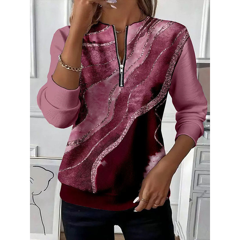 Women's Pullover Sweatshirt Zip Up Sweatshirts Graphic Abstract Fashion Casual Long Sleeve Crew Neck Regular Tops Street Dailywear Zipper Print Red Blue Purple Brown Green Fall Winter