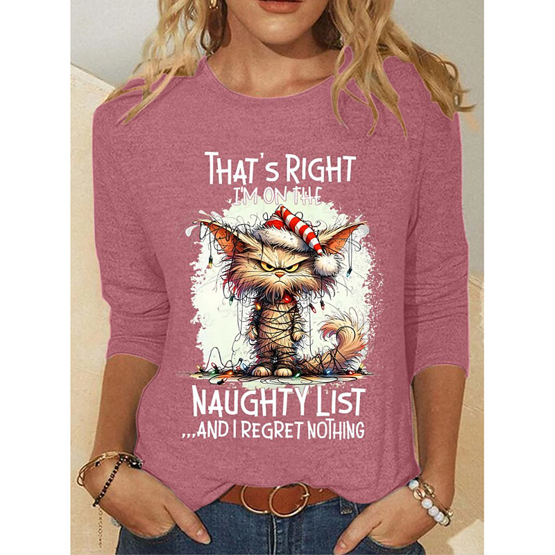 Christmas Women's T Shirt Graphic Animal Cat Vintage Fashion Stylish Long Sleeve Crew Neck Round Neck Regular Tops Daily Weekend Print Blue Black White Pink Green Spring Fall
