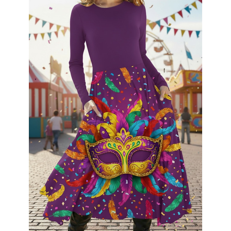 Women's Midi Dress Casual Dress Swing Dress Elegant Fashion Daily Outdoor Weekend Regular Fit Graphic Long Sleeve Crew Neck Light Purple Purple Fuchsia Lilac Spring Fall Winter Autumn