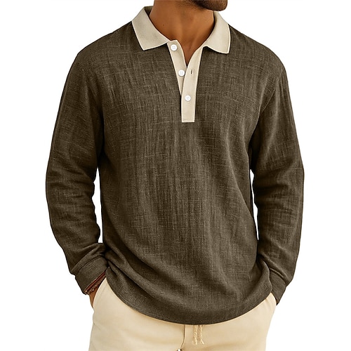 Per uomo Maglia da golf Polo da Golf Lavoro Casuale Bavero Manica Lunga Essenziale Moderno Blocco di colori Patchwork Bottoni Primavera Autunno Vestibilità regolare Verde scuro Nero Bianco Verde