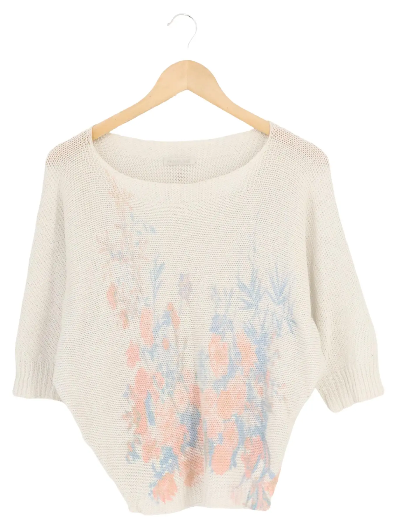HEIMATLIEBE Damen Strickpullover S Creme Blumen Casual Look