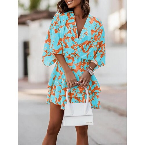 Per donna Mini Abito Abito a Tubino Casual All'aperto Uscire Vestibilità comoda Floreale Geometrico A righe Mezza Manica Scollo a V Blu Bianco Rosso scuro Rosso Estate Primavera