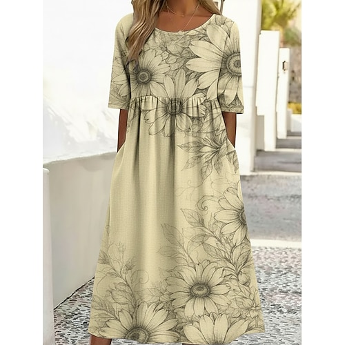 Per donna Abito Midi Vestito Casual Abito Stampato Moda All'aperto Vacanza Uscire Vestibilità comoda Floreale Grafico Mezza Manica Girocollo Giallo Chiaro Rosa chiaro Verde chiaro Grigio Estate