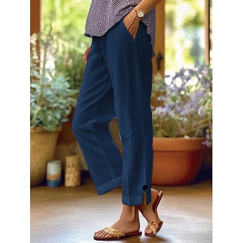 Per donna Pantaloni Corti Chino Lunghezza alla caviglia Naturale Tinta unita Tasca Comodo Inelastico Casual Quotidiano Blu Grigio chiaro Aalbicocca Nero Primavera Autunno Vestibilità comoda