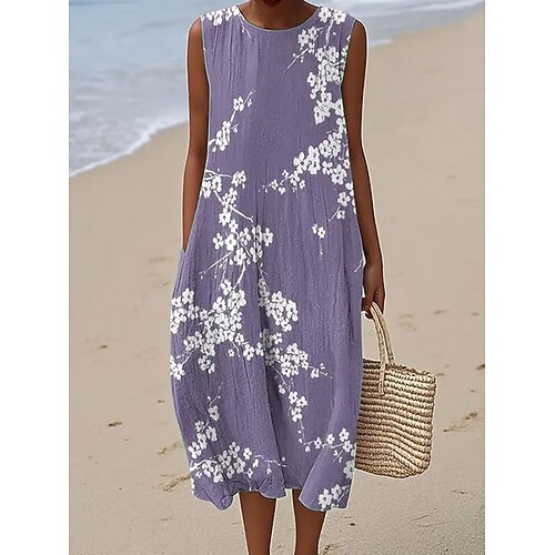 Per donna Abito Midi Abito a Tubino Vestito Estivo Abito a trapezio Vacanza Casual Boho Spiaggia Feste Vestibilità comoda Floreale Grafico Senza Maniche Girocollo Blu Viola Verde Cachi Estate