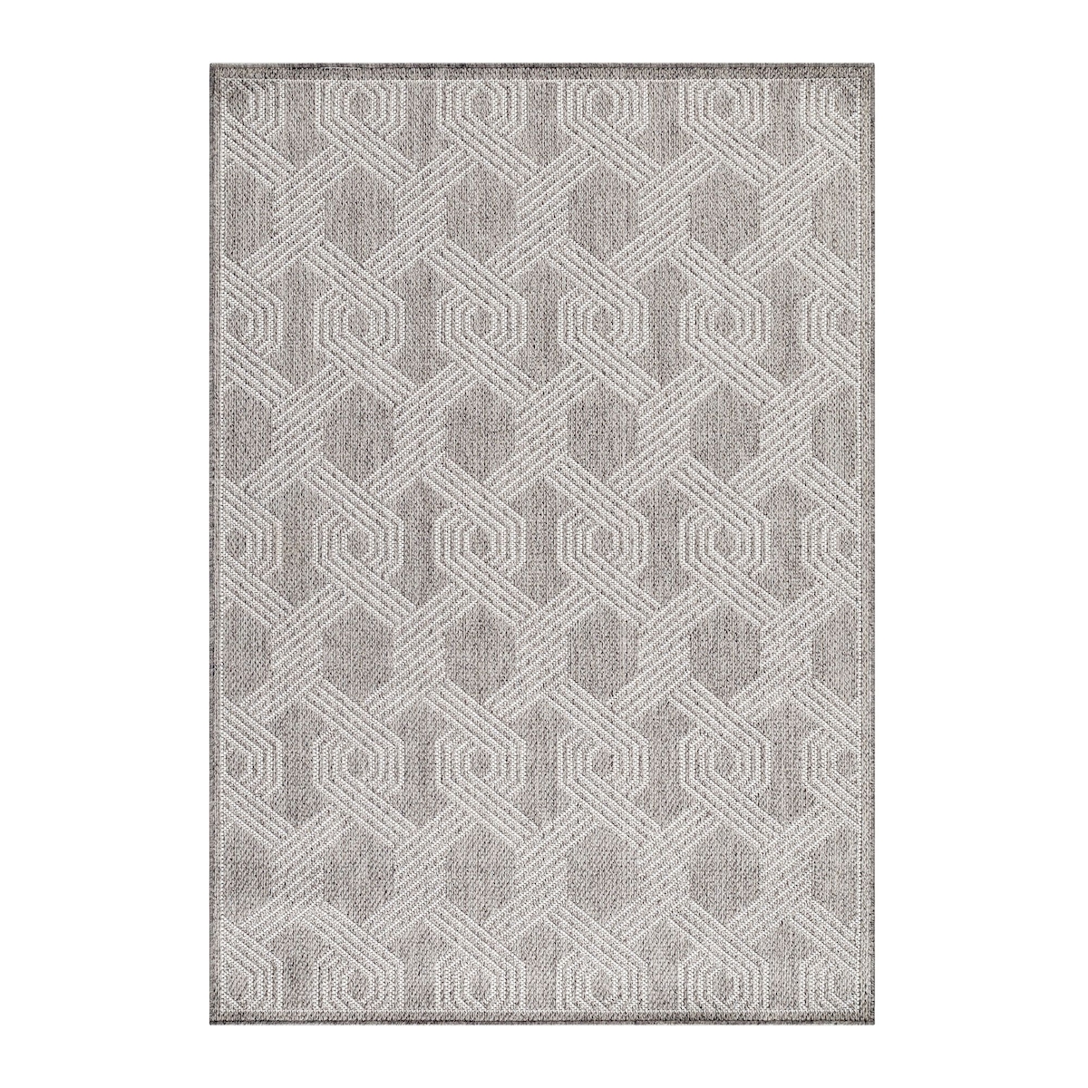 Carpetsale24 In- & Outdoor Teppich 140x200 cm, Wetterfest & Robust, Flachgewebe mit Geometrisch-Design in Grau & Creme, für Terrasse, Balkon, Küche
