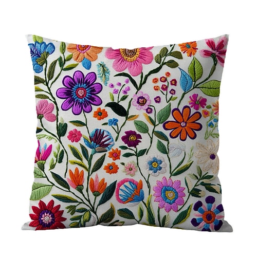 Federa per cuscino con motivo floreale, stampa piatta 2D, morbida e confortevole, con ricamo finto, per soggiorno, divano, camera da letto, decorazione per la casa