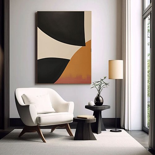 grande dipinto a olio astratto nero, arte murale originale con texture arancione, arte murale minimalista beige wabi-sabi, arredamento per la casa moderno ed elegante