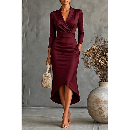 Per donna Abito Midi Abito in Raso Abito nero Vestito da Festa Abito da Cocktail Elegante Moderno Festa serale Feste Vestibilità regolare Semplice Manica Lunga Scollo a V Nero Bianco Rosa Vino