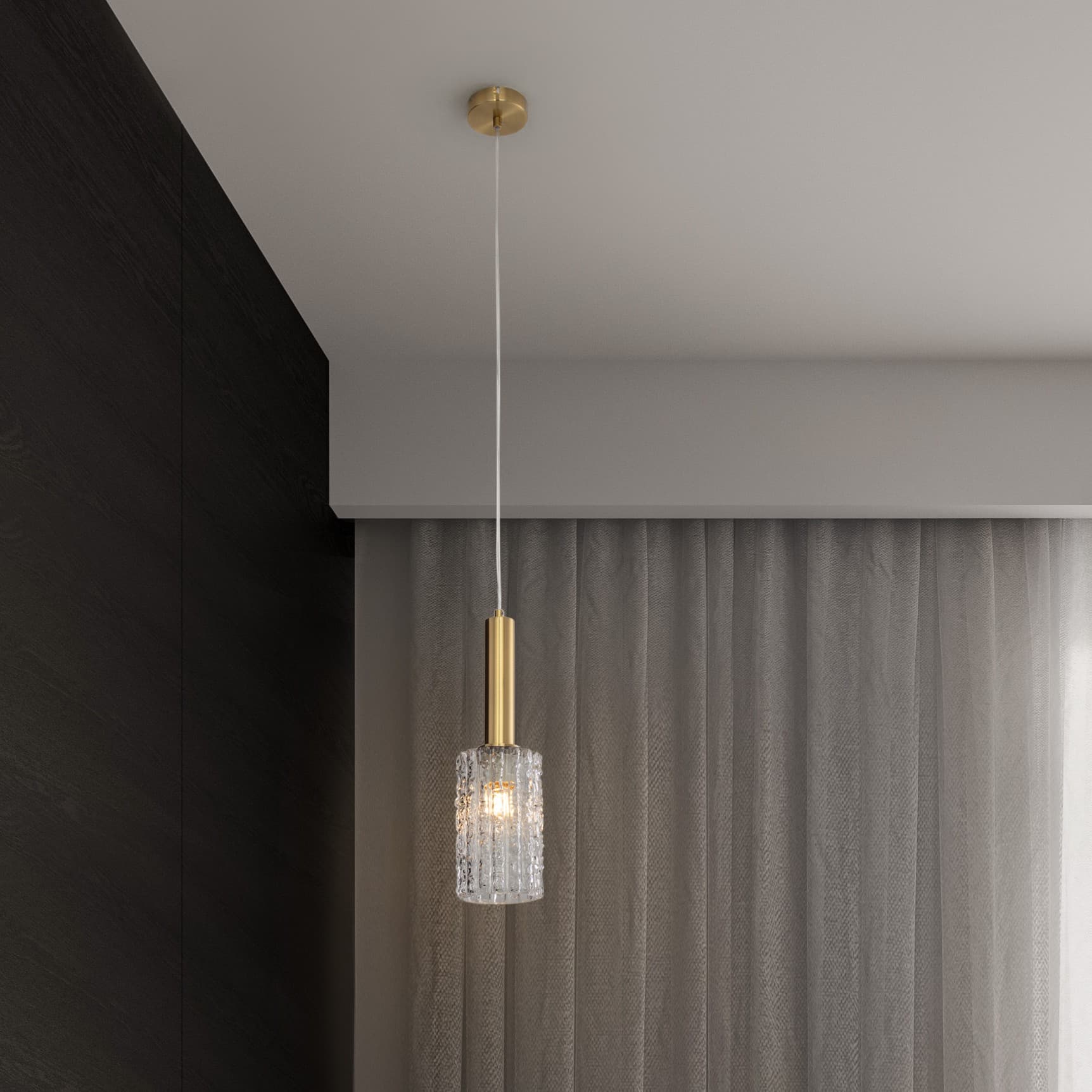 Nova Luce Certa - lampe suspendue - Ø 12,5 x 120 cm - verre transparent et laiton doré