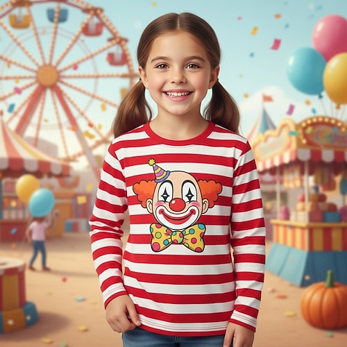 Costume di Carnevale 2026 Ragazze 3D Grafico A righe Pagliaccio Maglietta Manica Lunga Stampa 3D Primavera Autunno Sport Moda Streetwear Bambini 4-12 Anni Girocollo Casuale Quotidiano All'aperto