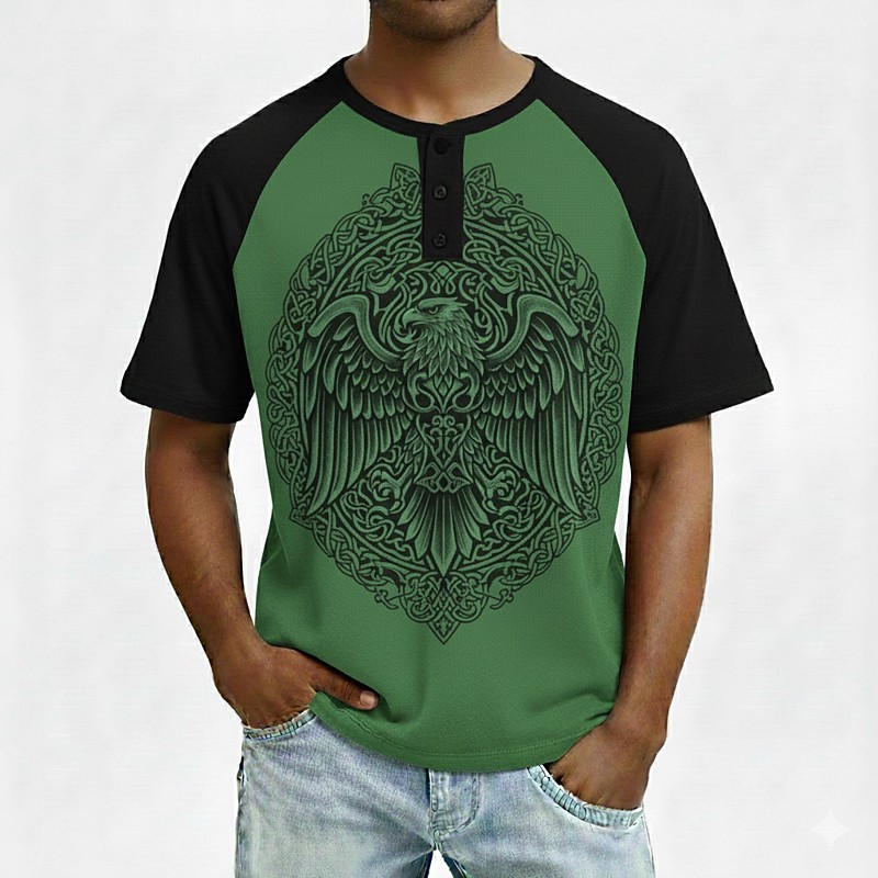 Men's Eagle Viking Henley Shirt Short Sleeve Fashion Designer Vintage Style Daily Outdoor Spring Spring Fall All Seasons Dark Blue Dark Green Gray Henley Henley T-Shirt