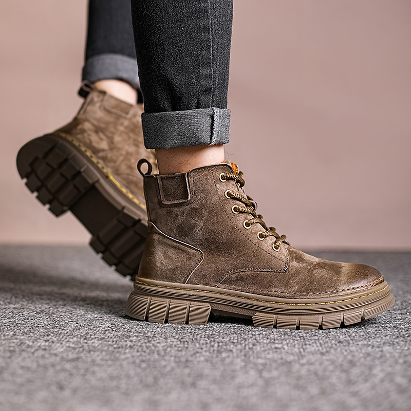 Men's Tan Faux Leather Work Boots – Casual Lace-Up Outdoor Ankle Shoes for Construction, Hiking Daily Use