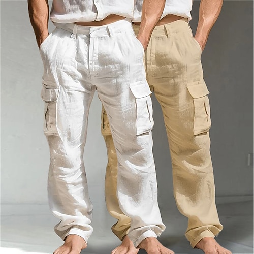 Per uomo Pantaloni Cargo Pantaloni di Lino Pantaloni Estivi Pantaloni casual Multi-tasche Gamba Dritta Confezione multipla Semplice Comodità Traspirante Lunghezza intera All'aperto Quotidiano Uscire
