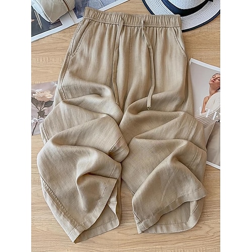Per donna Pantaloni in cotone e lino Gamba larga Chinos Vacanza Moda Streetwear Lunghezza intera Vita Alta Semplice Tasca Fascia Elastica Comodo Comodità Morbido Micro-elastico All'aperto Streetwear