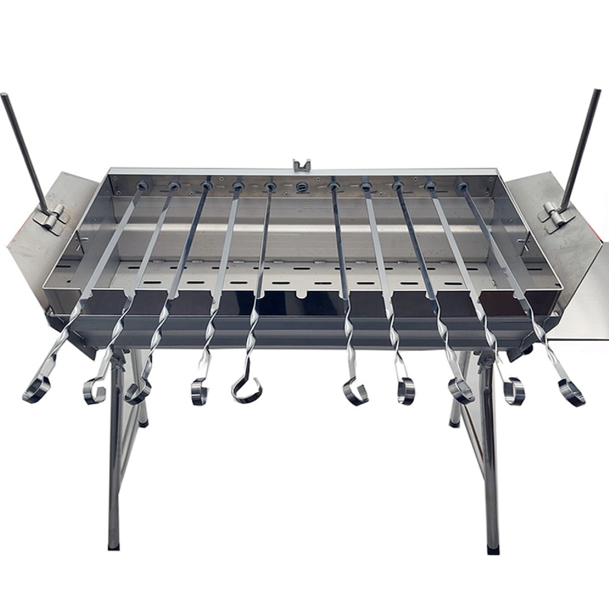 Grillpeter Mangal Set Leto Schaschlik Grill Edelstahl 2mm mit Spießdreher Motor 10 Spieße