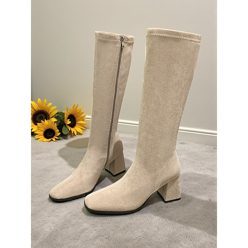Women's Suede Over-the-Knee Boots with Zipper Closure, Block Heels, Comfortable and Chic for Winter or Casual Outings
