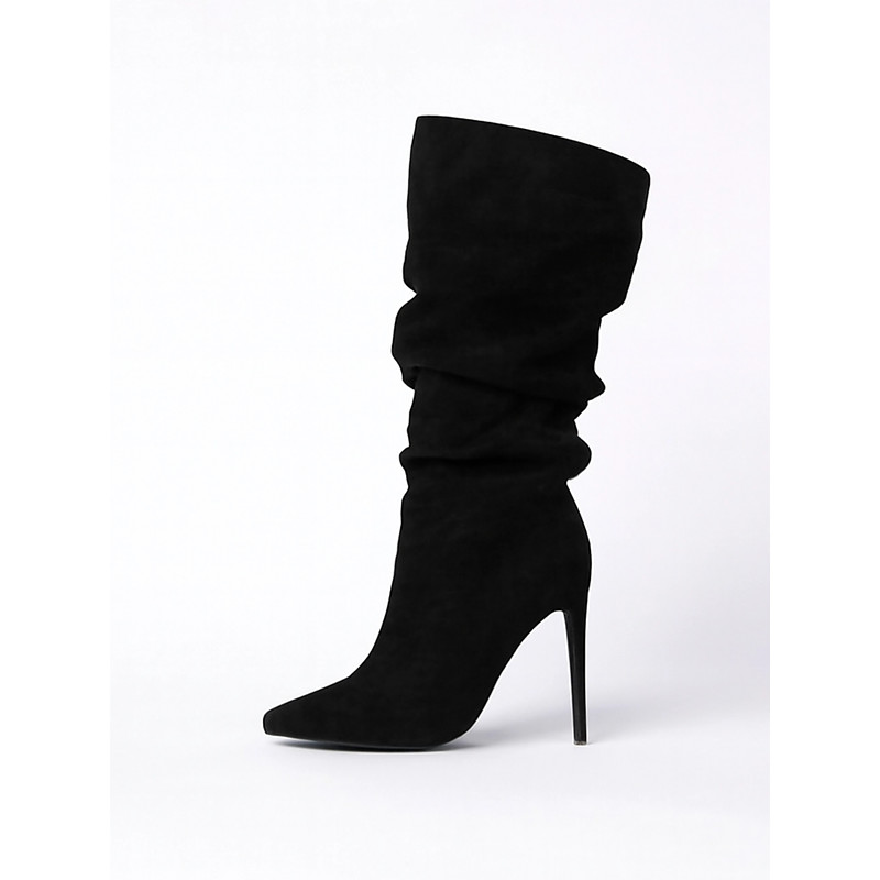 Women's Slouchy Suede Stiletto Boots, High Heel Pointed Toe Mid-Calf Boots in Multiple Colors for Stylish Fall and Winter Outfits