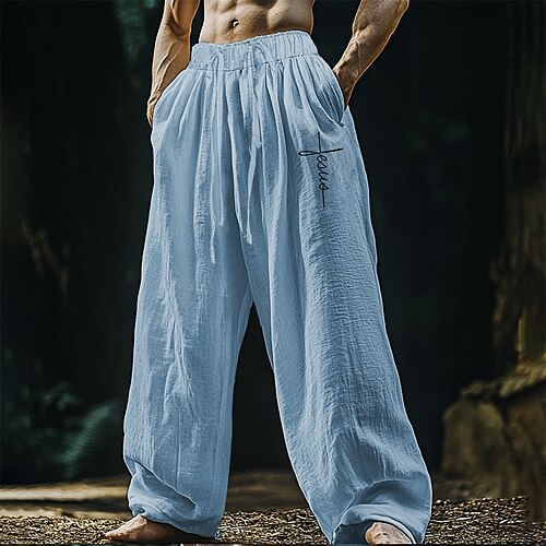 Per uomo Pantaloni di Lino Pantaloni Pantaloni Estivi Pantaloni da Spiaggia Tasca Semplice Comodità Traspirante Vacanza Quotidiano Ferie Hawaiano Boho Nero Bianco