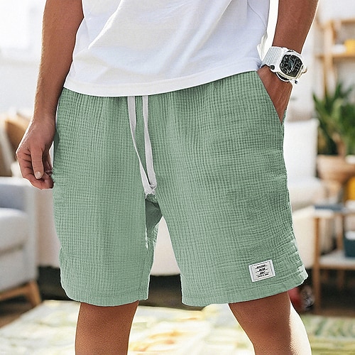 Per uomo Pantaloncini di lino Pantaloncini estivi Pantaloncini da spiaggia Tasche A cordoncino Vita elastica Liscio Comfort Traspirante Breve Da mare Per eventi Spiaggia Hawaiano Boho Nero Bianco