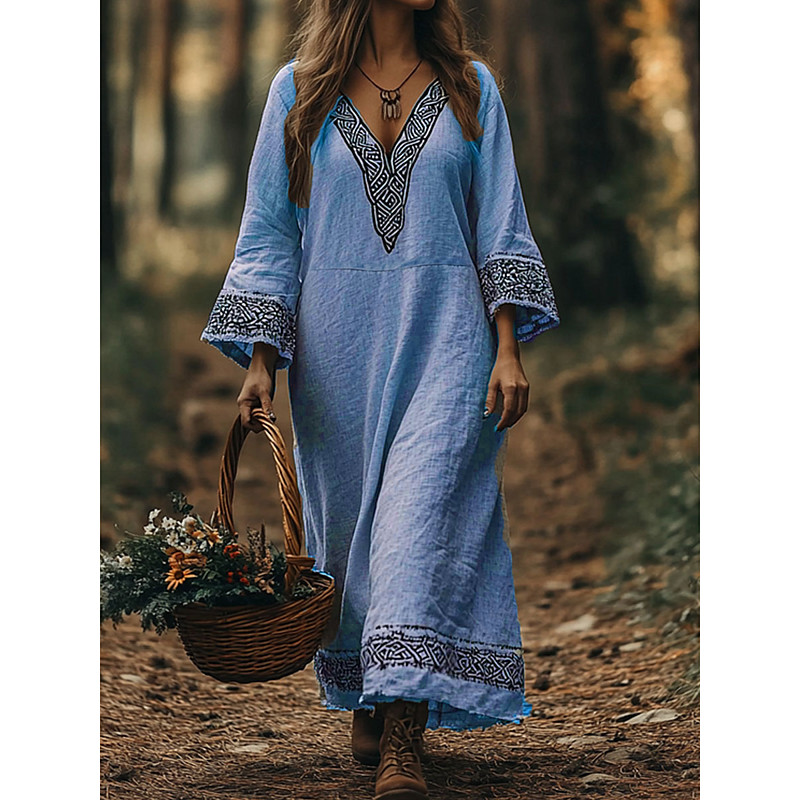 Women's Maxi long Dress A Line Dress Vacation Casual Boho Beach Regular Fit Graphic Geometric Long Sleeve V Neck Pink Blue Purple Green Summer Spring Fall