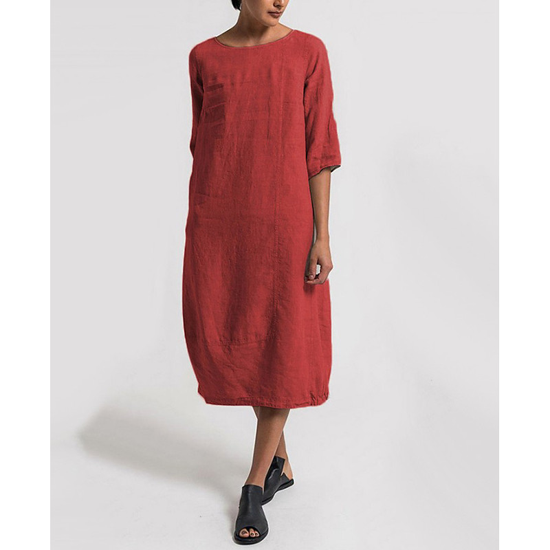 Women's Pink Navy Blue Brown Summer Spring Midi Dress Linen-Inspired Dresses Cotton Linen Dress A Line Dress Casual Daily Weekend Loose Fit Plain Crew Neck