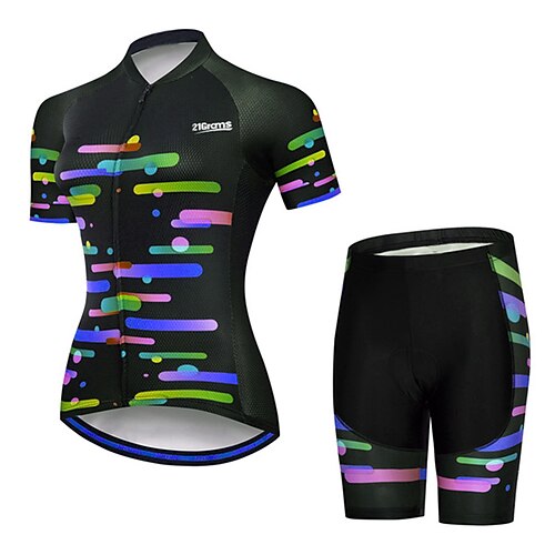 21Grams Damen Radtrikot mit Radhose kurz Trägern fahrradbekleidung set Radtrikot mit Radhose fahrradbekleidung set Kurzarm MTB Mountain Rennrad Weiß Schwarz Schwarz Weiß Punkt Fahhrad Sportkleidung