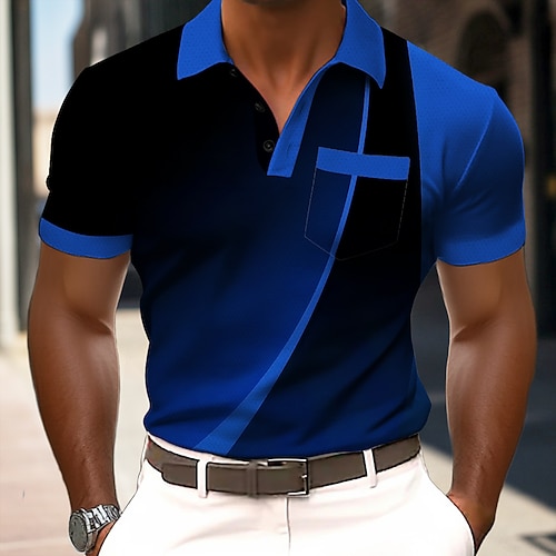 Herren Geometrisch Linie Poloshirts Kurzarm Polo-Shirts Hemden mit Kragen Business-Casual Outdoor Athleisure Alltagskleidung 3D-Druck Knöpfe Atmungsaktives Gewebe Frühling Sommer Sommer Blau Rote