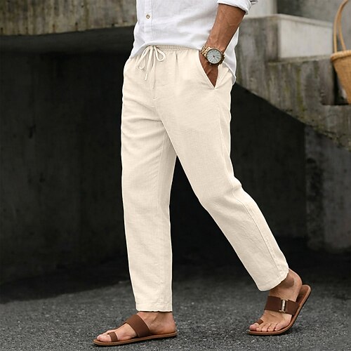 Per uomo Shorts Shorts di Lino Pantaloncini Estivi Tasca Elastico in vita Coulisse Semplice All'aperto Quotidiano Uscire Vacanza Casual Nero Bianco