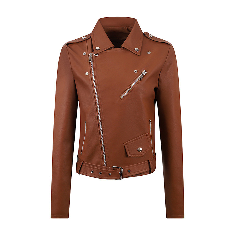 Women's Faux Leather Jacket Biker Jacket Warm Comfortable Zipper Pocket Casual Solid Color Vacation Street Casual Daily Wear Regular Turndown Regular Fit Long Sleeve Outerwear Black Wine Chocolate