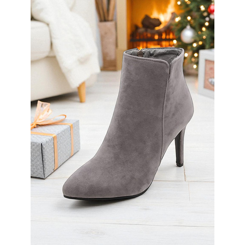 Women's Red Suede Stiletto Ankle Boots with Zipper Detail, Pointed Toe, Elegant and Chic, Perfect for Christmas, Holiday Parties and Formal Occasions