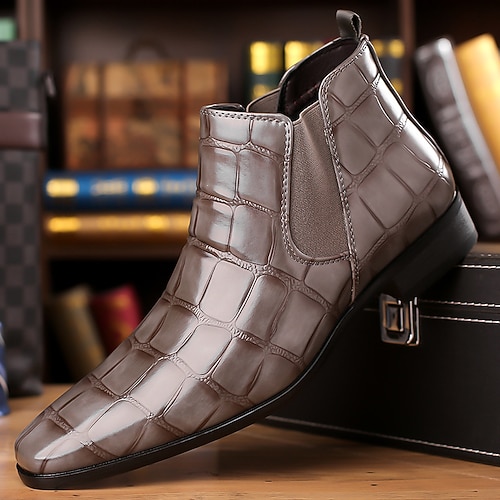 stivaletti chelsea da uomo con motivo coccodrillo marrone – stivaletti in similpelle con pannelli laterali elastici, stivali eleganti in stile vintage per l'ufficio e la sera