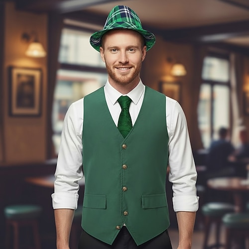 San Patrizio 2026 Gentiluomo Testimoni dello Sposo Irlandese fortunato Carnevale Gilet Slim Fit Adulti Per uomo Giorno di San Patrizio Matrimonio Ospite di nozze Festa / Sera Costume di Carnevale