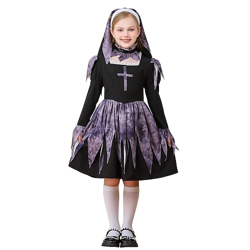 Costume di Carnevale 2026 Suora Carnevale Vestito Costume Costume di fantasia Cosplay Lolita Punk Gotico Bambini Ragazze Halloween Carnevale Feste Performance Costume di Carnevale facile Vestirsi